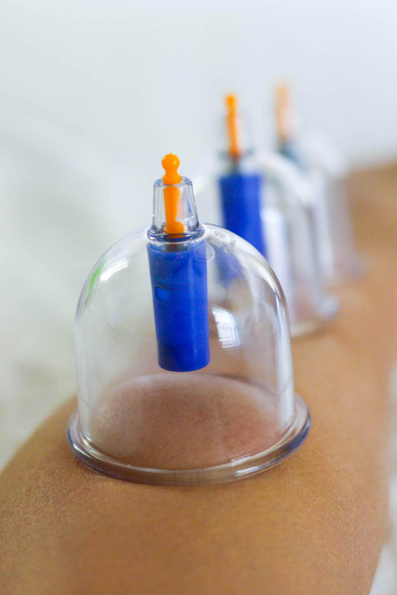 The suction of the cups rapidly facilitates rigid soft tissue release by stretching it up from underlying structures, thus loosening areas of adhesion or restriction, activating muscle spindle reflexes that relax contractile tissue and retraining the myofacial structures. Further, it stimulates the nervous system reflex to the cerebral cortex, contributing to an increased rate of recovery from pain and disease.